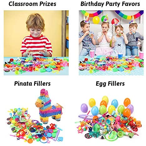 Made in Chenghai VARIOUS APPLICATION: birthday party favors for kids, pinata filler, goodie bag fillers, treasure box prizes for classroom, carnival prizes for kids, party favors assortment for boys and girls, party giveaways, prize box toys, treasure chest toys, etc. MULTIPLE VARIETIES PARTY FAVOR PACK: 24 kinds toys,each 5 pieces, multi -colors as picture shows. SAVE TIME & ENERGY for PARENTS and TEACHERS: Solve the difficulty in collecting small toys or prizes for kids birthday party and prize box. EYE CATCHING BRIGHT COLORS:Very decent present for kids–they will be excited and enjoy these prizes and toys for a long time. New Version:Updating from the second image. Now its more popular for kids.