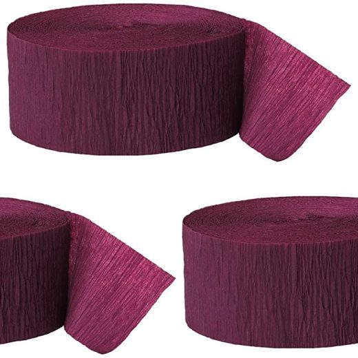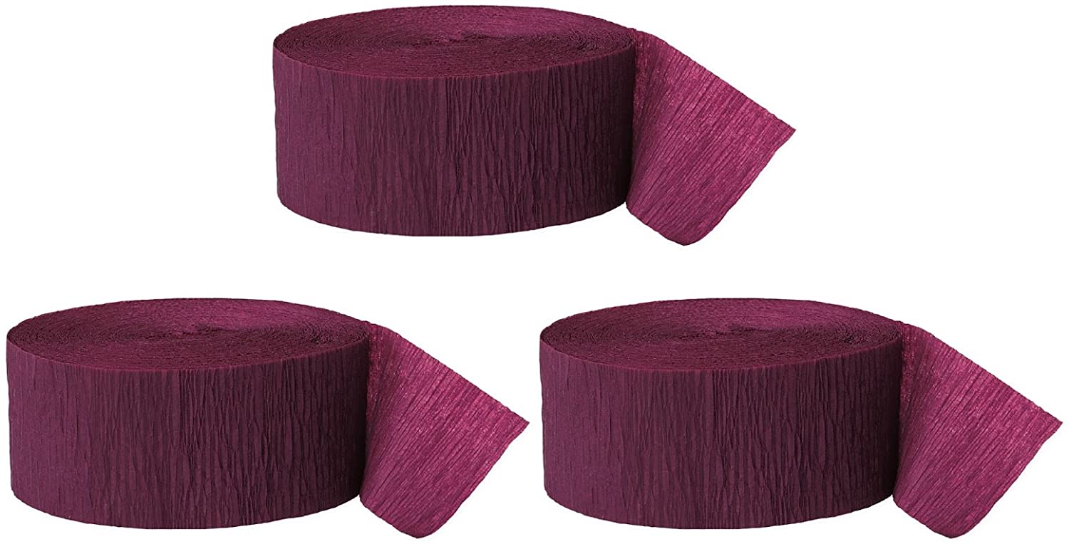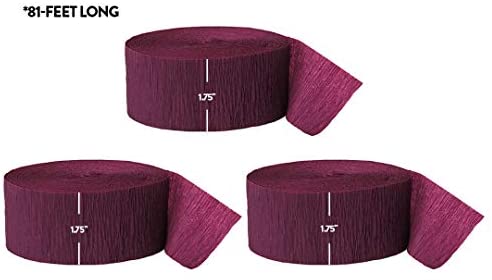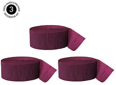 Andaz Press Crepe Paper Streamer Hanging Party Decorations Kit, 240-Feet, Burgundy Maroon, 1-Pack, 3-Rolls, Colored Wedding Baby Bridal Shower Birthday Supplies