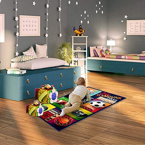 ANDGOAL Kids Rug Playmat Football – Kids Carpet Large Fun Area Kids Rug for Childrens Playing Soccer Game playmats Kids Rugs for Bedroom Girls Boys