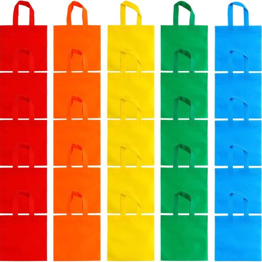 Aneco 25 Pack 9.5 x 9.5 Inch Non-Woven Tote Bags Party Gift Bag Goodie Treat Bags with Handles Party Favor, 5 Colors