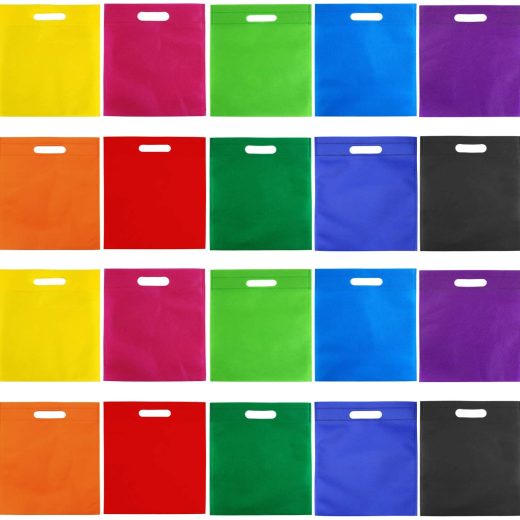 Specifications: Size: 24.5 x 29.5 cm Material: polyester non-woven fabric Color: red, orange, yellow, green, blue, purple, hot pink, candy green, royal blue, black Quantity: 50 pieces(5 pieces of each color ) Package includes: 50 x Non-woven bags Notes: Due to manual measurement, size error within approx. 1 cm