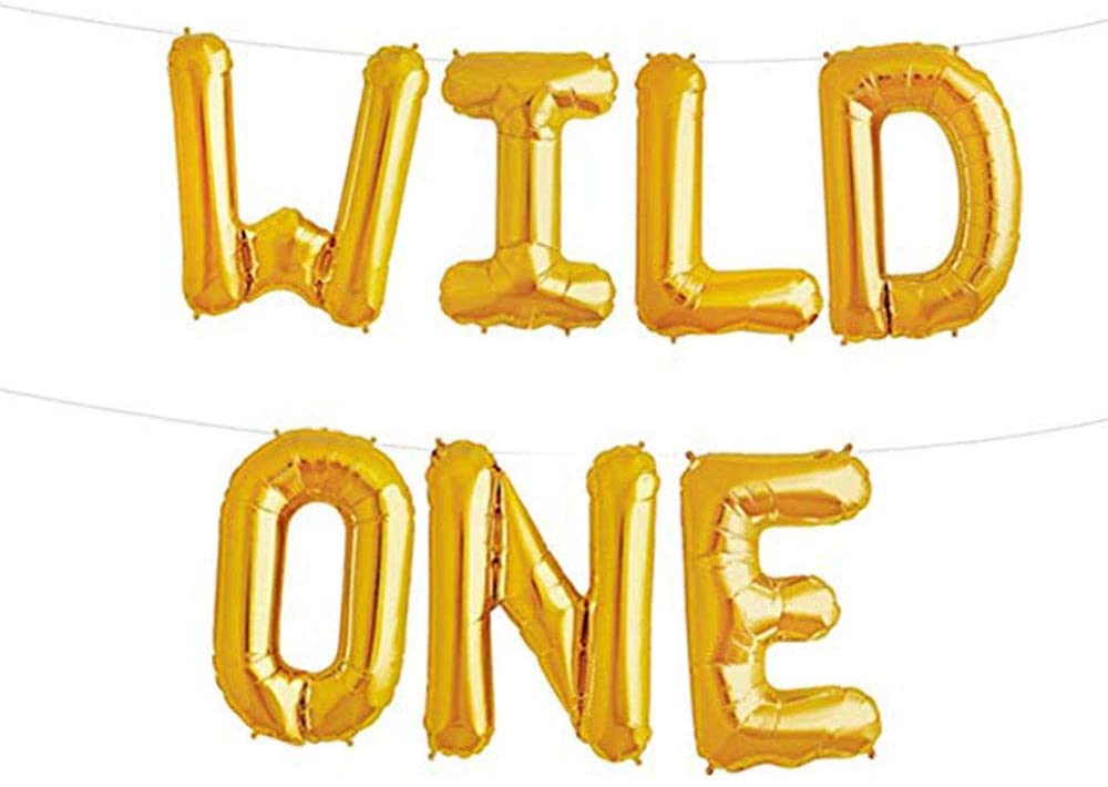 AnnoDeel 16inch WILD ONE Balloons, Gold Letter Foil Balloons for Baby First Birthday Baby Show 1st Party Supplies Decorations