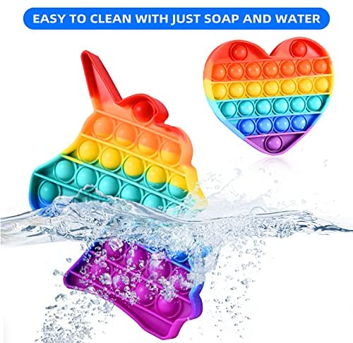 Anubis Ventures LLC 2 Pack Magical Rainbow Pop It Fidget Toys- Unicorn Dinosaur and Heart Pop It, Poppers Bubble with Pop Sound Sensory Fidget Toy for Kids and Adults Stress, Anxiety Relief Autism Toy