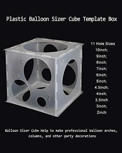 Balloon Size Box: Comes with 11 holes and size marker which help you make same size of balloons Balloon Glue Point: 200 pieces balloon glue point help to stick the balloon to the place where you want 11 Different Hole Sizes: 10 inch, 9 inch, 8 inch, 7 inch, 6 inch, 5 inch, 4.5 inch, 4 inch, 3.5 inch, 3 inch, 2 inch Occasion: Support to be washed and perfect for making balloons to birthday party, wedding, baby shower and any other celebration Usage: Balloon size measurement tool for party balloon decoration, consistent size balloons make balloon arch and columns look professional and beautiful