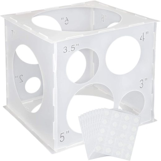 Aoibrloy 11 Holes Collapsible Plastic Balloon Sizer Box Cube with 200Pcs Balloon Glue Point for Balloon Decorations, Balloon Arches and Balloon Columns