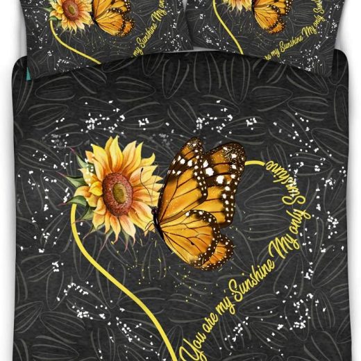 Aoopistc Sunflower Butterfly Heart Bedding Set for Women Girly Full Size Ultra-Soft Cotton Quilt Comforter Cover – Black Twin Size (68 x 88 inch)