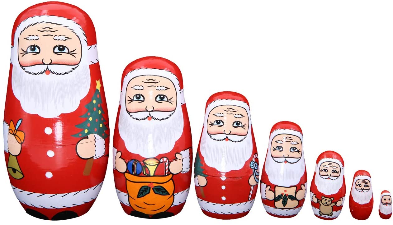 Apol Set of 7 Cute Santa Claus Bringing Gifts Pattern Nesting Dolls Handmade Wooden Matryoshka Crafts Russian Doll for Kids Toy Children Christmas Birthday Gift Home Decoration