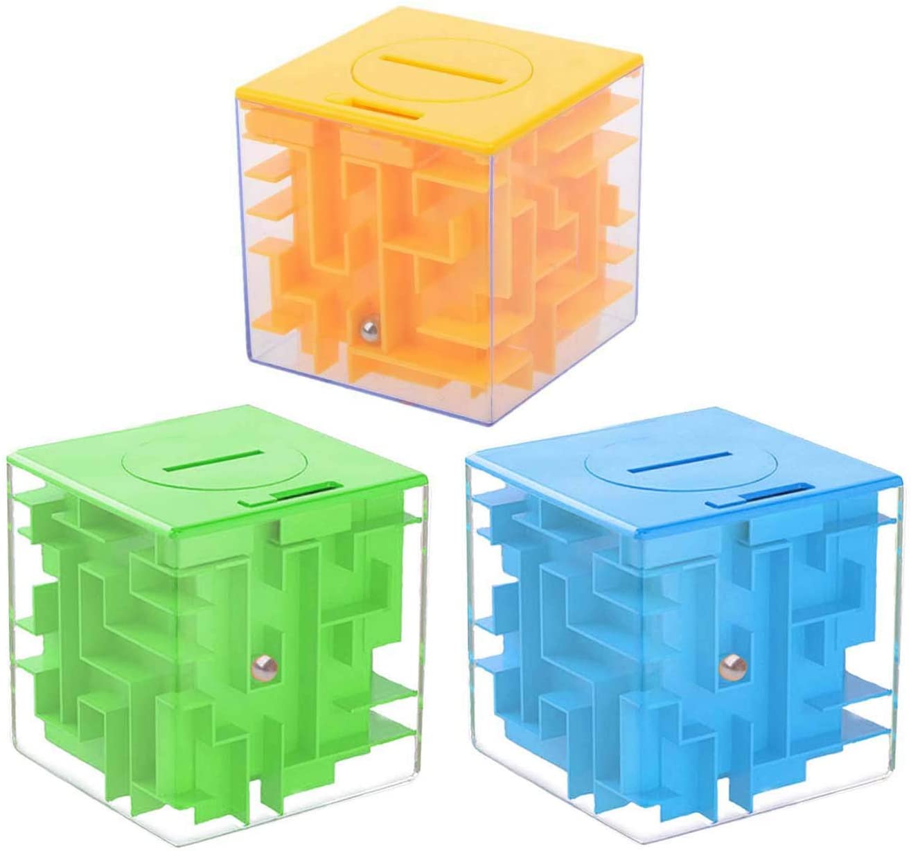 Arology 3 Pack Money Maze Puzzle Box Money Holder, Great Gift, Brain Teaser Games for All Ages, Coin Collection Cube Saving Bank Cases