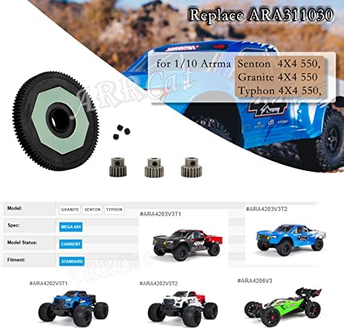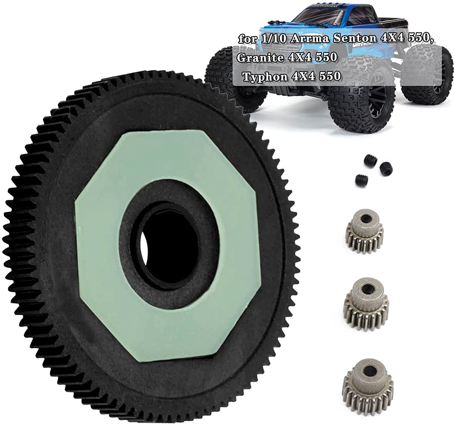Customer Satisfaction Guarantee: Customers Satisfaction is Our Main Priority. If you are not 100% completely satisfied with our products, please do not hesitate to contact us to request a refund or exchange! The ARRCat Hardened Steel 48DP 91T Spur Gear Differential Gear Complete Slipper Set is perfect fit for : 1/10 Arrma Senton 4X4 MEGA550 / Granite 4X4 MEGA550 / Typhon 4X4 MEGA550. Spur Gear (91T 48dp), Replace the Original Part# ARA311030. Why Choose ARRCat RC Upgrades Parts: The 91 spur gear set is with industry standard 48dp tooth profile,industry standard 48dp tooth profile. The speed depends on your gear ratio. We provide 3 different teeth pinion gear (17T 19T 21T) to make you more choice in gear ratio. The gear set is with precision manufactured gear teeth for smooth, consistent performance,they works with low noise. Made of Hard Steel Metal,precision manufactured gear teeth for smooth, consistent performance.tough molded composite material for long-lasting durability . 100% New, Genuine ARRCat RC Products,Exquisite workmanship and Durable,Buy with Confidence,Friendly Customer Service. Easy to install, Upgrade part, improves the overall performance of the rc car. Arrival Time: About 1 to 3 days after paying the order. Package include: 1 x Spur Gear (91T, 48dp) 1 x Pinion Gear 17T 1 x Pinion Gear 19T 1 x Pinion Gear 21T 3 x Screws Color: Black Please Note: 1.Please be sure to check your parts list to ensure the part is compatible with your specific version of the vehicle listed. 3.Please allow slight error due to manual measurement.