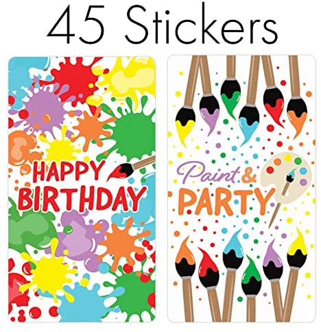 45 STICKERS: Painting Birthday Party Favor Stickers made to match multi-color arts and crafts birthday party supplies for a girl or boy. CANDY NOT …