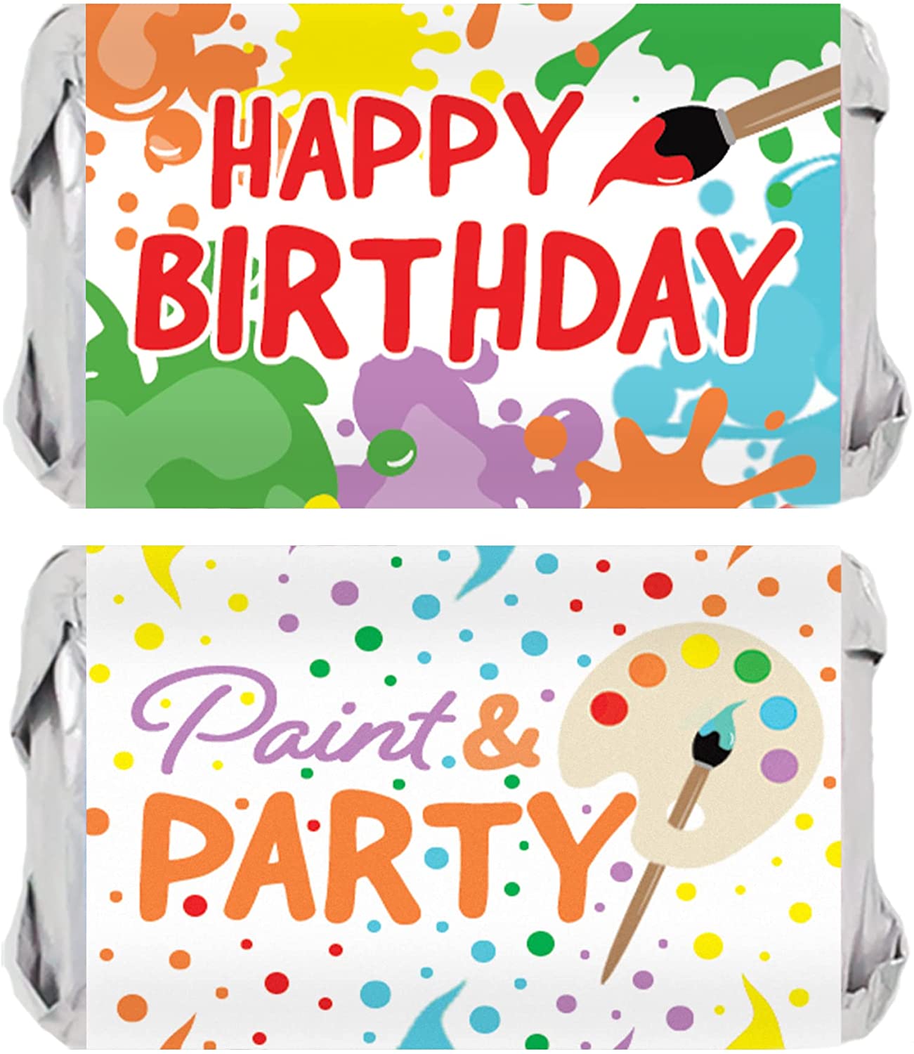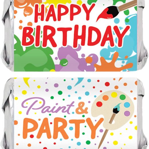 45 STICKERS: Painting Birthday Party Favor Stickers made to match multi-color arts and crafts birthday party supplies for a girl or boy. CANDY NOT INCLUDED. 2.65 x 1.45 stickers wrap on Miniatures candy bars for paint splatter dress for a mess party themed candy favors for a tween birthday party. EASY TO USE: Peel and stick around mini candy bars to make arts and crafts themed birthday party candy favors for kids and adult guests. MULTI-USE PARTY FAVOR STICKERS: use as birthday scrapbook stickers and to make birthday themed party favors – great for a art and painting birthday party. Make your celebration MEMORABLE with the Distinctivs Paint and Party Art Birthday Party Collection.