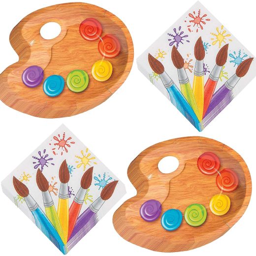 Art Party Supplies – Paint Palette Paper Dessert Plates and Artist Brush Beverage Napkins (Serves 16)