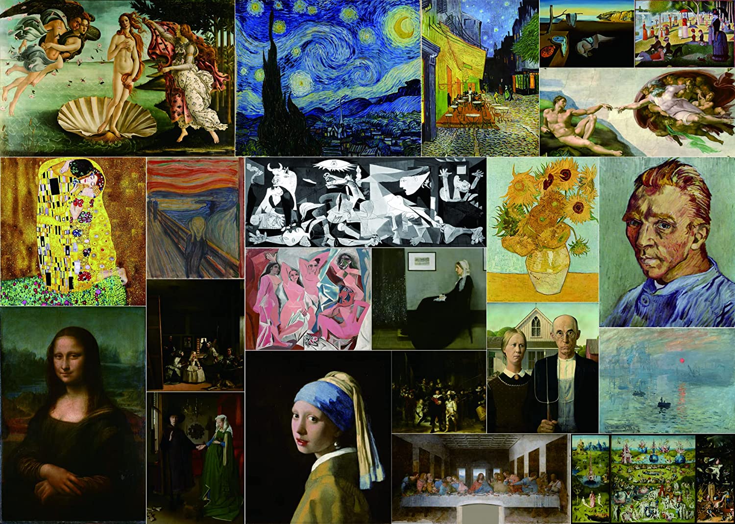 Art Puzzles for Adults 1000 Piece, Famous Paintings Puzzles Fine Art Collection, Great Paintings Jigsaw Puzzle Starry Night Sunflower Monet Collage Puzzle