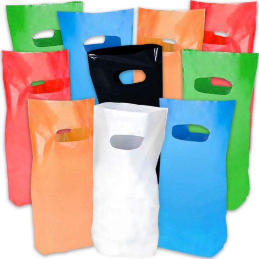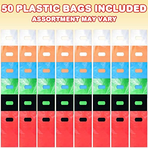 ArtCreativity Colorful Gift Bags, Set of 50, Durable Plastic Goodie Bags in 8 Vibrant Colors, Party Favor Baggies for Candy, Treats, and Gifts, Essential Birthday Party Supplies, 15 x 8.75 Inches