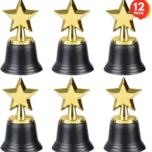 MAKE THE KIDDOS FEEL LIKE WINNERS Golden Goodness Great-looking trophies the little ones will want to keep! Whether it’s a sports event or spelling bee, school carnival or talent show, these mini golden trophies ensure those little competitors hop home with their heads held high. Every set comes with 12 goldstar trophies, each sized at a super-portable 4.5 inches. And they aren’t just great for awarding winners, they make awesome props and decorations too! Use them as photo and movie props or as décor for any gold-themed party. Whatever you use them for, the result is one and the same: happy smiles from ear to ear! Great for Gifting Whether you’re looking for party favors for your little one’s birthday party, fun party supplies, prizes for that kids’ carnival or contest, or just a cool gift to make your cutie pie’s day, these plastic golden trophies are guaranteed to be a hit! Every set not only comes with 12 trophies to give you enough to dish around but also a 100% money-back guarantee to give you total peace of mind. Inspire a rush of smiles and giggles without having anything to lose. Here’s why you’ll love these trophies: Come in a pack of 12 to give you great value. Have a star design with a vibrant touch of gold. Great for awarding winners in sports and competitions.Can be used as props and decorations that pop.The 4.5” size makes them great for goody bags. Cool party favors for boys and girls ages 3+Baked by a no-hassle, 100% money-back guarantee.Go ahead, make the kids’ day with fun trophies they’ll be yearning to show off!