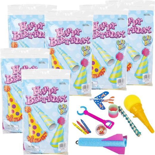 LIGHT UP THE CANDLES AND LET THE PARTY BEGINTriple the GoodnessYou’ve found it – the kids’ party favor set that will have your little distinguished guests smiling from ear to ear! We’ve curated our treat bags to please both boys and girls. Inside, you’ll find everything from a foam glider, ice cream launcher, spin top, finger trap, to ice cream launcher (assortment may vary). But there’s more funto be enjoyed! Not only is there a colorful Happy Birthday poster included, but also a festive scene waiting to be colored on the reverse side. This means party-goerscan grab some crayons, unleash their creativity, and create a keepsake they’ll simply cherish.Great for GiftingWhether you’re throwing a safari-themed party, going for a dinosaur aesthetic, or looking for treats for those little princesses, these goodie bags with toys areguaranteed to be a hit! Every set not only comes with 6 filled favor bags to give you enough to dish around but also a 100% money-back guarantee to give you total peace of mind. Inspire a rush of smiles and giggles without having anything to lose.Here’s why you’ll love these happy birthday goody bags: Come in a set of 6 to give you great value.They are filled with a variety of toys that suit boys and girls.Include a colorful poster to act as an eye-catching keepsake.The reverse side of the poster has a scene for coloring.Work with most kinds of themes and ideal for ages 3+Backed by a no-hassle, 100% money-back guarantee.Go ahead, make that bash one to remember!