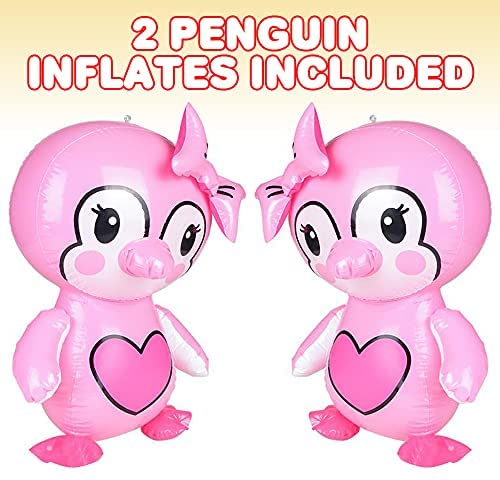 ArtCreativity Inflatable Pink Penguins, Set of 2, Blow-Up Penguin Inflates for Birthday Party Favors, Party Decorations and Supplies, Pool Party Float, and Game Prize for Kids