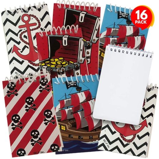 A CUTE HOME FOR YOUR THOUGHTS TO FLOURISHScribble Away!Doodle or write, sketch or color, take notes or take stock: whenever you need to jot something down on the fly, these mini notepads give you room to do just that! Every set comes with a total of 16 memo pads measuring a pocket-size 3.5” x 2.25”. This means you can easily carry one in your purse, pocket, backpack, or wallet, ready to be whipped out at moment’s notice. And wait till you see the colorful designs! Every set comes with a variety of pirate designs that both boys and girls will love, Perfect for any pirate-themed soiree.Great for GiftingWhether you’re looking for party favors for your little one’s birthday party, cool party supplies, prizes for that kids’ carnival or contest, or just a fun gift to make your cutie pie’s day, these mini notepads are guaranteed to be a hit! Every set not only comes with 16 writing pads to give you enough to dish around but also a 100% money-back guarantee to give you total peace of mind. Inspire a rush of smiles and giggles without having anything to lose.Here’s why you’ll love these pirate notepads:Come in a pack of 16 to give you great value. Each memo pad has 20 pages to give you enough room. The pocket-size fits in your bag or purse with ease. Fun party favors, goodie bag fillers, and stocking stuffers. Backed by a no-hassle, 100% money-back guarantee. Go ahead, get little cute treats that leave happy smiles in their wake!