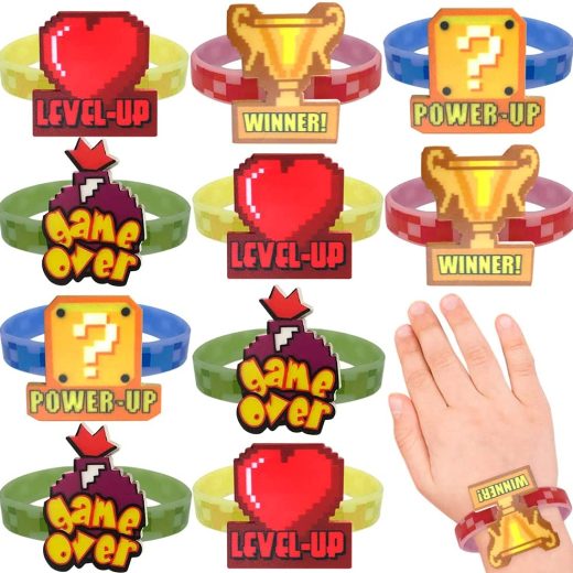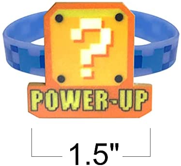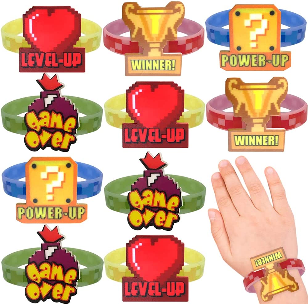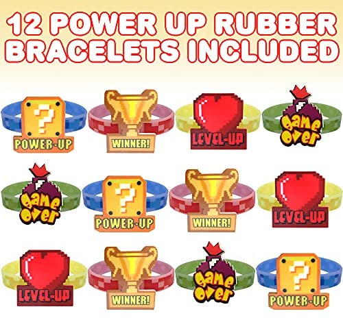 ArtCreativity Power Up Rubber Bracelets for Kids, Set of 12, Colorful Stretchy Rubber Wristbands with Classic Video Game Icons, Fun Birthday Party Favors, Goodie Bag Fillers, Carnival Prize