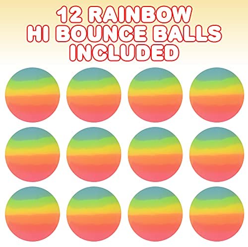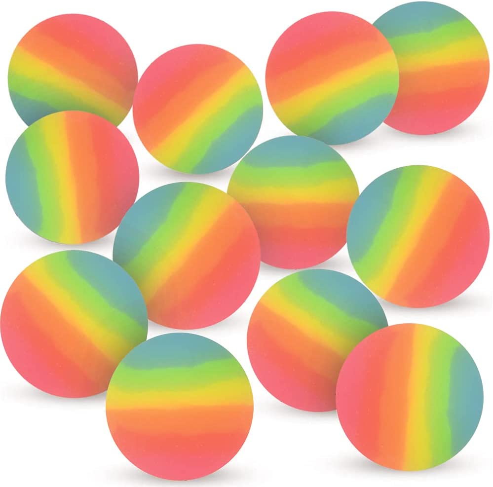 ArtCreativity Rainbow Bouncy Balls for Kids, Set of 12 Bouncing Balls with Extra-High Bounce, Beautiful Rainbow Colors, Birthday Party Favors, Goodie Bag Fillers