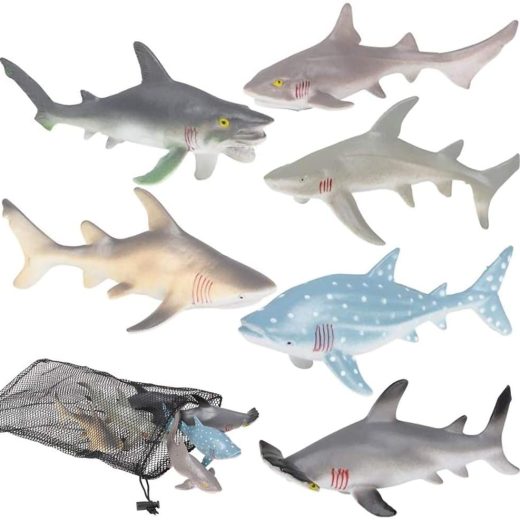 ArtCreativity Shark Figures in Mesh Bag – Pack of 6 Sea Creature Figurines in Assorted Designs, Bath Water Toys for Kids, Shark Party Favors for Toddlers, Boys, and Girls, Ocean Life Party Decor