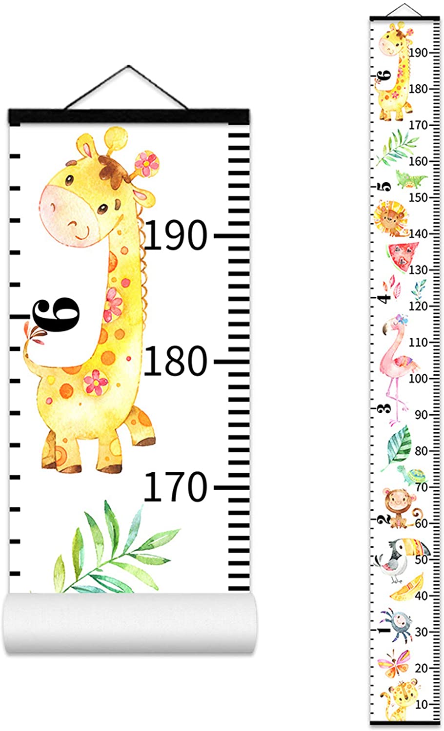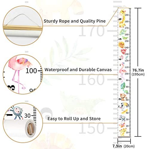 ASENART Growth Chart for Kids Roll-up Height Chart for Boys Girls Fabric Canvas Animal Height Measurement Ruler for Nursery Room Removable Wall Decor 79