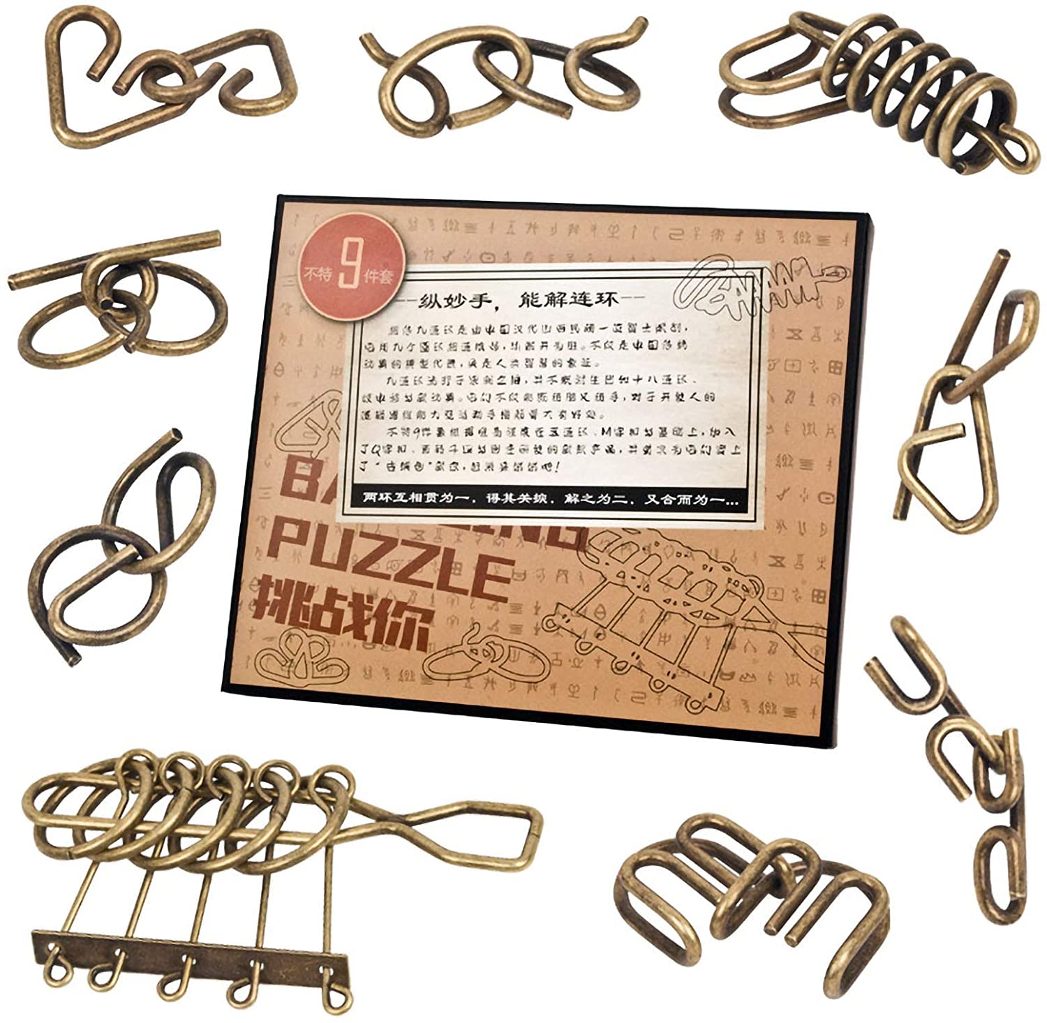 Assorted Metal Puzzle Brone Color 12 Pack IQ Wire Metal Puzzles with Paper Box Gift Package Great Educational Metal Puzzle Games Toys for Children and Adults by AHYUAN