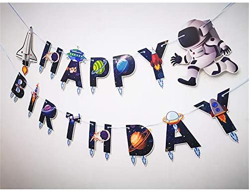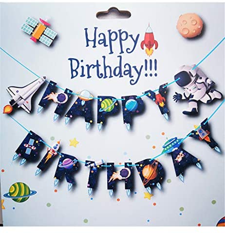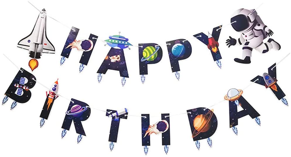 Astronaut Space Theme Birthday Party Banner 15 Card Combination Children Happy Birthday Decoration Gift (White)