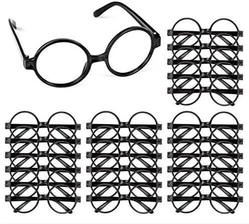 Atopxing 24 Pack Plastic Wizard Glasses Costume Glasses Black Round Glasses Frame No Lenses for Posing Props Costume Party Cosplay Supplies Description: :Atopxing Size: Total Length:13cm/5inch Glassess Frame Diameter:4.7cm/1.85inch Color:Black Material:High Grade Plastic Perfect for:Halloween parties, graduation parties, dress up events, novelty fancy dress gatherings,costume party or even as a regular party accessory. Package includes: 24 x Black plastic wizard glasses