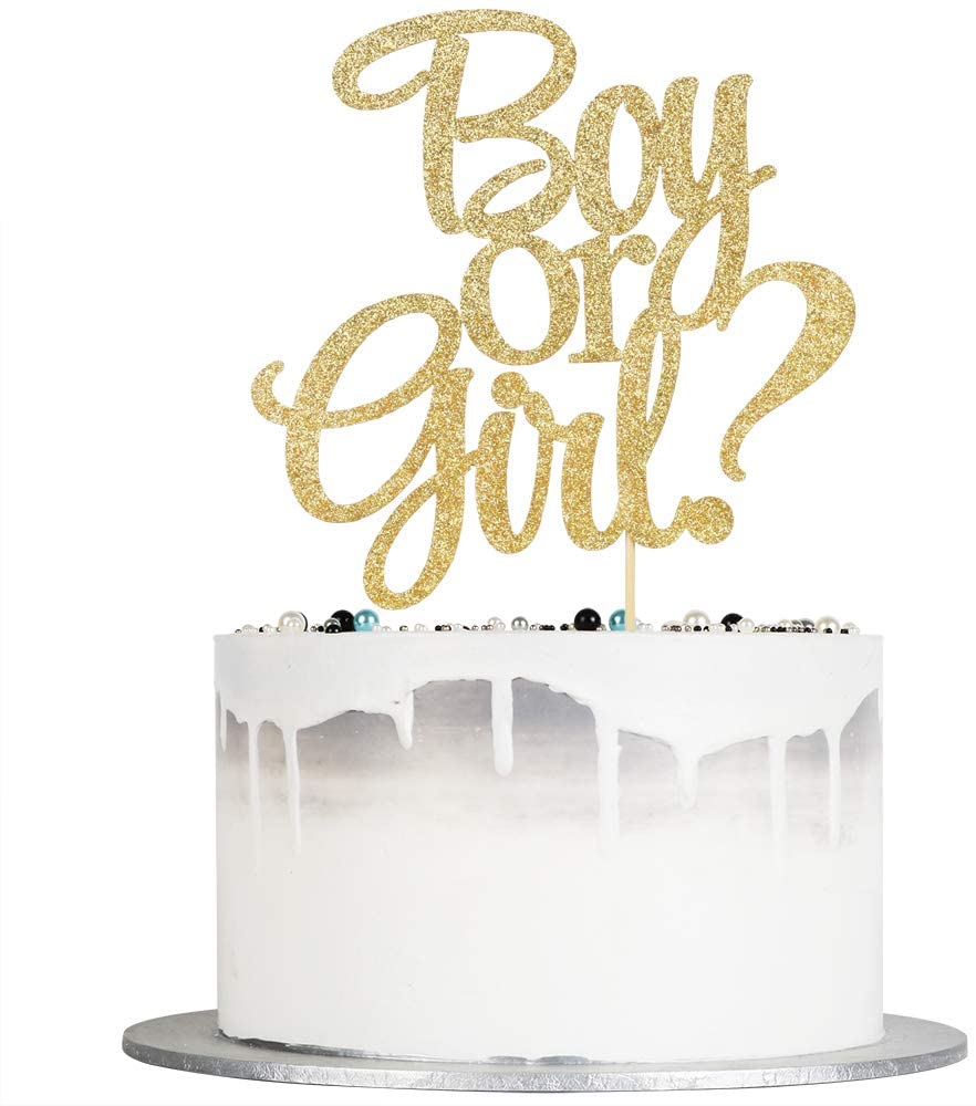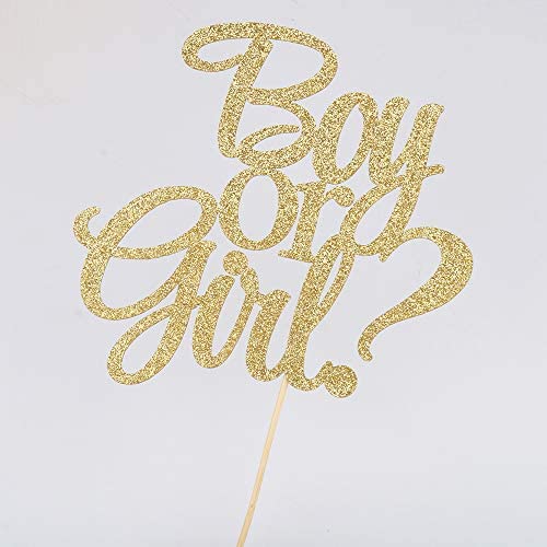 Auteby Boy or Girl Cake Topper – Gold Glitter Baby Shower Party Decorations Supplies