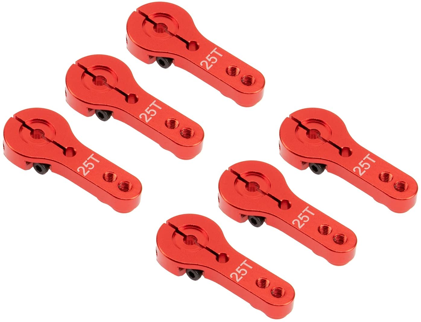 Axixi 6PCS 25T Aluminum Servo Horns M3 Threads Metal Steering Arm for RC Car Truck Buggy Airplane(Red)