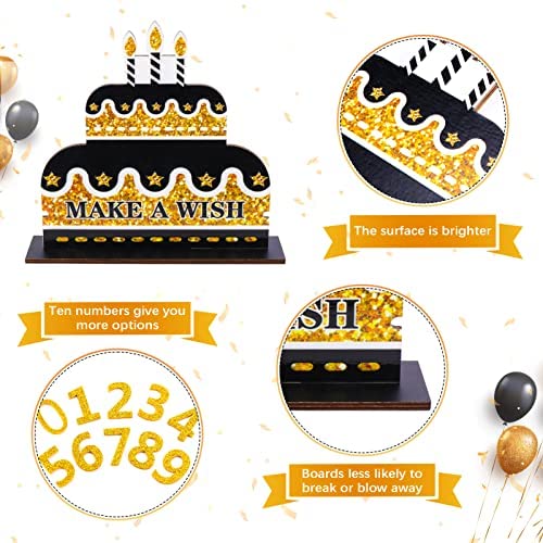 Birthday Centerpieces—Comes with 3 pack wooden birthday centerpieces for tables, 10 number stickers from 0 to 9. Black gold charming table decorati…