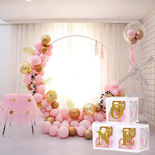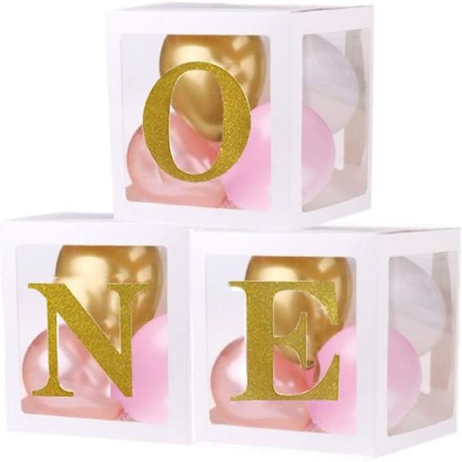 The package includes: This set of birthday party boxes includes 3 white transparent boxes with ONE letters.NO BALLOONS High quality of material:Our birthday decoration boxes are certified and thoroughly tested, high quality, safe and non-toxic, These boxes are made of environmental and durable paper. Easy to assemble:They are easy to assemble. And comes apart, just assemble these paper box as picture shows, our birthday box decoration are reusable and collapsible for easy storage for the next event. FOR MANY OCCASIONS – Perfect party photography background decorations for baby boy girl 1st birthday decorations favor, monster, safari, unicorn, paw patrol, bee, cow, lumberjack, donut theme 1 year old birthday party supplies, baby home décor, event outdoor indoor and so on. 100% SATISFACTION GUARANTEED – Were absolutely sure youll love balloons boxes for parties, if there is any fault with the product, let us know and well immediately ship out another or give you a full refund! order now with confidence!
