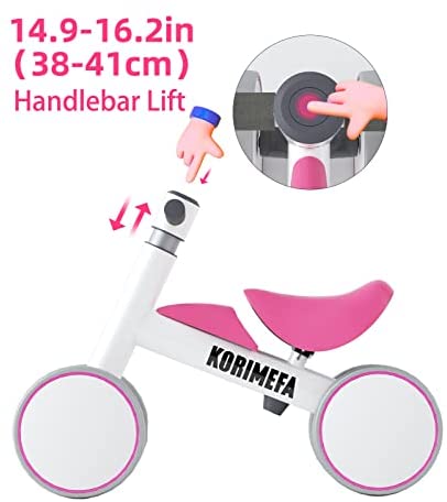 ADJUSTABLE HANDLEBAR AND SEAT HEIGHT: This kids balance bike has an adjustable handlebar(14.9 in /38cm – 16.2 in/41cm) and The height of the rear seat cushion can be adjusted(9.4 in/24cm – 11.5 in/29cm). Recommended for 1-3 years old, 29” to 37.4” tall.allowing the bike to fit your childrens height at each stage of growth.