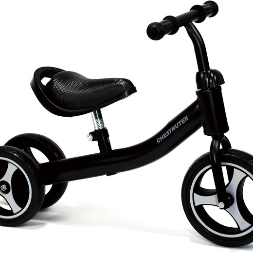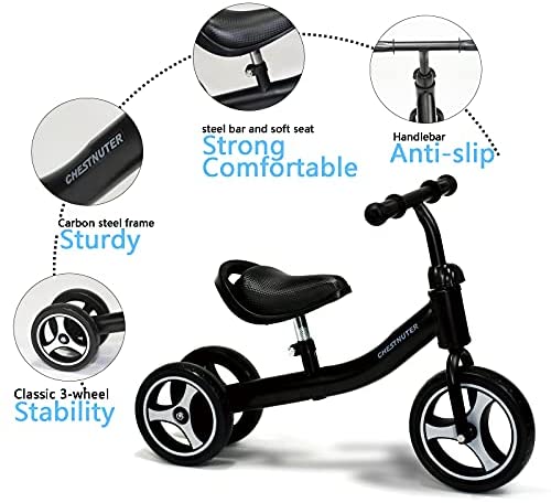 Classic design: Classic three wheel stability design, Tricycle with no pedals,baby will not tip over because of the stability when it stops.