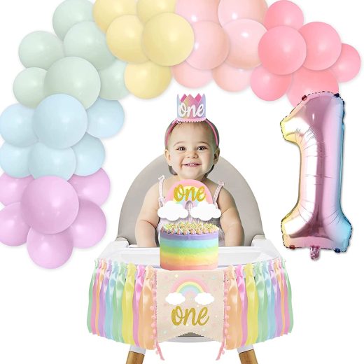Be the first to review “Baby Girl First Birthday Pastel Rainbow Highchair Decorations Kit | One High Chair Banner, One Cake Topper and One Crown Tiara | 32 1st Birthday Balloon & 36pcs Pastel Balloon Garland Arch for girl” Cancel reply