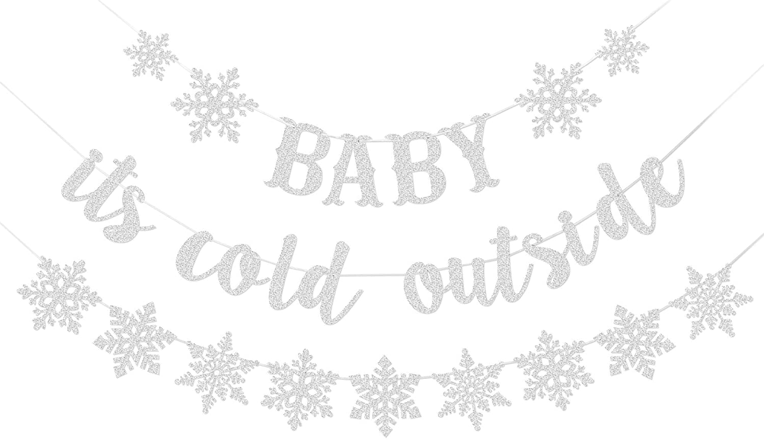 Baby Its Cold Outside Banner and Snowflake Banner-Winter Baby Shower,Winter Wonderland Decorations(Sliver Glitter)