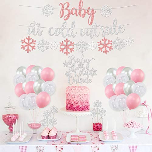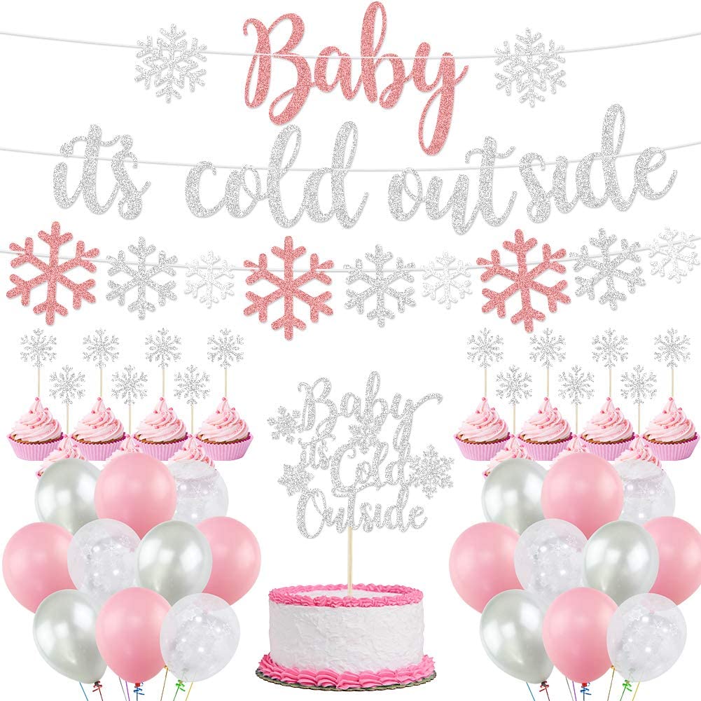 Baby Itu2019s Cold Outside Party Decorations, Banner, Snowflake Balloons, Garland for Winter Wonderland Baby Shower, Christmas, Winter Birthday Party Supplies, Pink