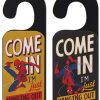 Made of a durable plastic 3.5 (8.9cm) x 9.25 (23cm) in size Design shown. Can be used indoor or outdoor. Hole is universal sized and will work with all standard door knobs