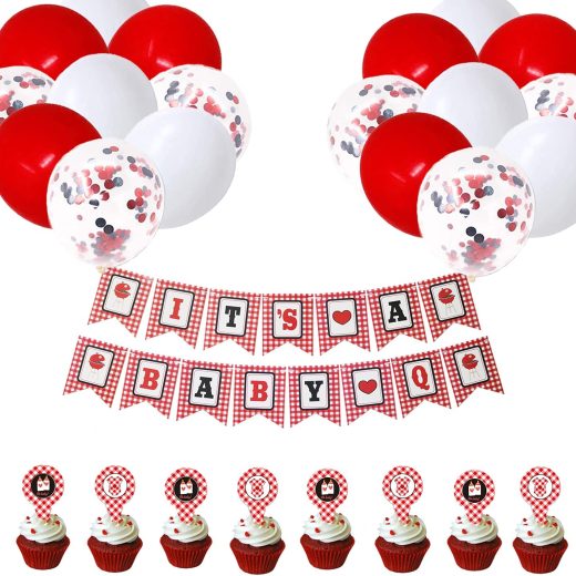Baby Q Party Decorations, BBQ Baby Shower Party Supplies with Pre-strung It is A Baby Q Banner, 40 Pieces Cupcake Toppers and 18 Balloons for Summer BBQ Barbecue Picnic Baby Shower Birthday Party Decorations