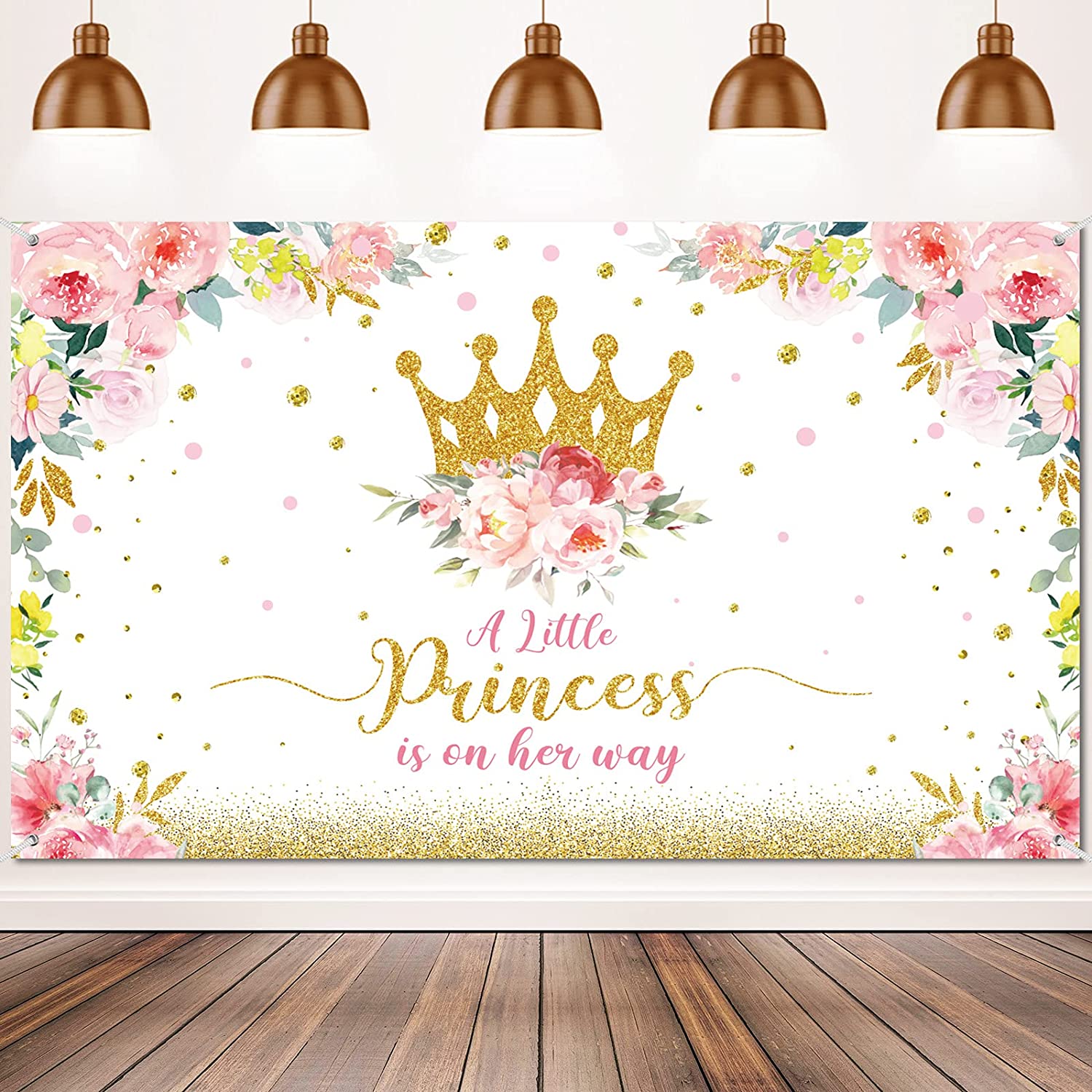 Baby Shower Backdrop Little Princess Baby Shower Party Decorations for Girls Pink Flower Baby Shower Banner Gold Crown Glitter Baby Shower Photography Background Cake Table Decor Photo Booth Props