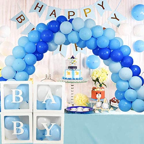 Baby Shower Decorations Balloons Box for Boys Transparent Decoration Boxes with Letters 32pcs Blue and White Balloons for Baby Shower First Birthday Party Gender Reveal Backdrop Home Decor (White)