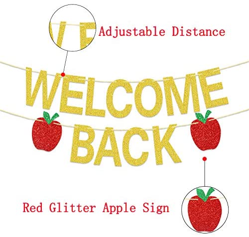PACKAGE INCLUDED: 1×Back To School gold glitter banner, 6×honeycomb tissue paper apple hanging decorations. Perfect for Classroom Banner Decoration…