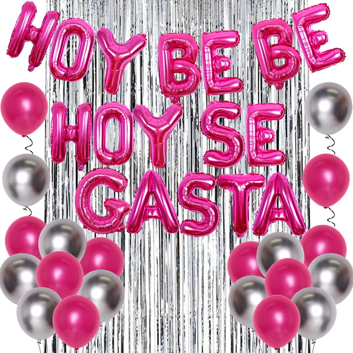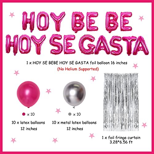 Bad Bunny Party Decorations Hoy Se Bebe Hoy Se Gasta Banner Hot Pink and Silver, Bad Bunny Balloons Foil Fringe Curtain Kit for Women Birthday Bachelorette Hip Pop Party Decorations