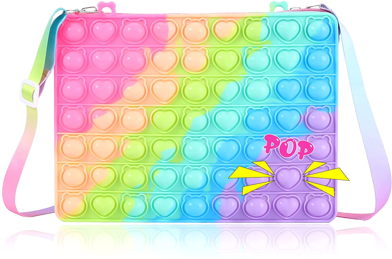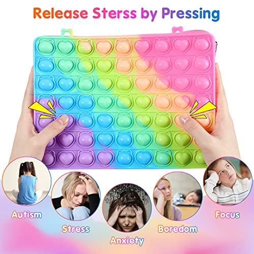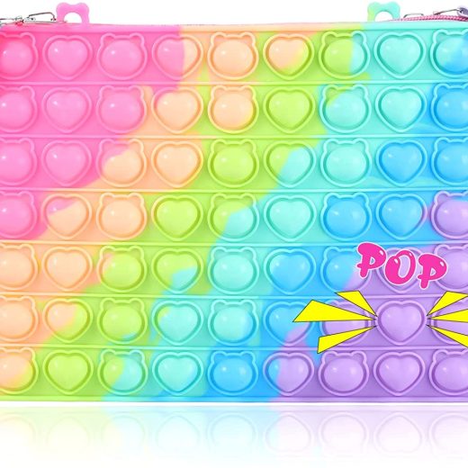 BAIWER Pop Purse Gift for Girls, Fidget Toys Big Pop Shoulder Bag for iPad, Push Bubble Bags Popper Handbag Crossbody Bag for Girls, Stress Relief Fidgets School Supplies for Kids