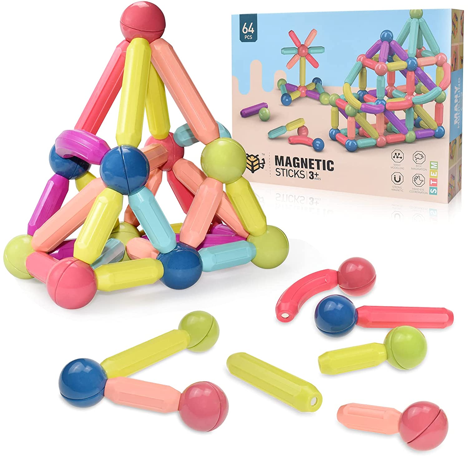 BAKAM Magnetic Building Blocks for Kids Ages 4-8, STEM Construction Toys for Boys and Girls, Large Size Magnetic Sticks and Balls Game Set for Kidu2019s Early Educational Learning (64PCS)