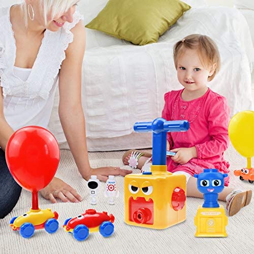 EDUCATIONAL TOYS: This is an Air-Powered vehicle set for kids ‘science experiment about Aerodynamics knowledge. Suitable for aged 3-year-old and up. LEARNING & PLAYING: Great DIY balloon toy for kids to learn some science and physics knowledge when they having fun with this race car. Moreover, it also improves childrens exercise ability. SAFE & HIGH QUALITY: The balloon car kit is made of ABS plastic which is BPA free, No-toxic. The surface of this toy set is as smooth as the pictures show and won’t hurt your kids’ skin. EASY TO GET STARTED: Four steps to play! Install the handle of the pump. Insert the balloon inside the car and secure it; Pump up the balloon as much as you can; Press the release button on the pumper so the car can move forward. PERFECT GIFT FOR KIDS: Suitable for children 3+, can effectively help children to carry out cognitive training. You can also enjoy wonderful parent-child time, ideal for birthday gifts, Christmas gifts, etc.