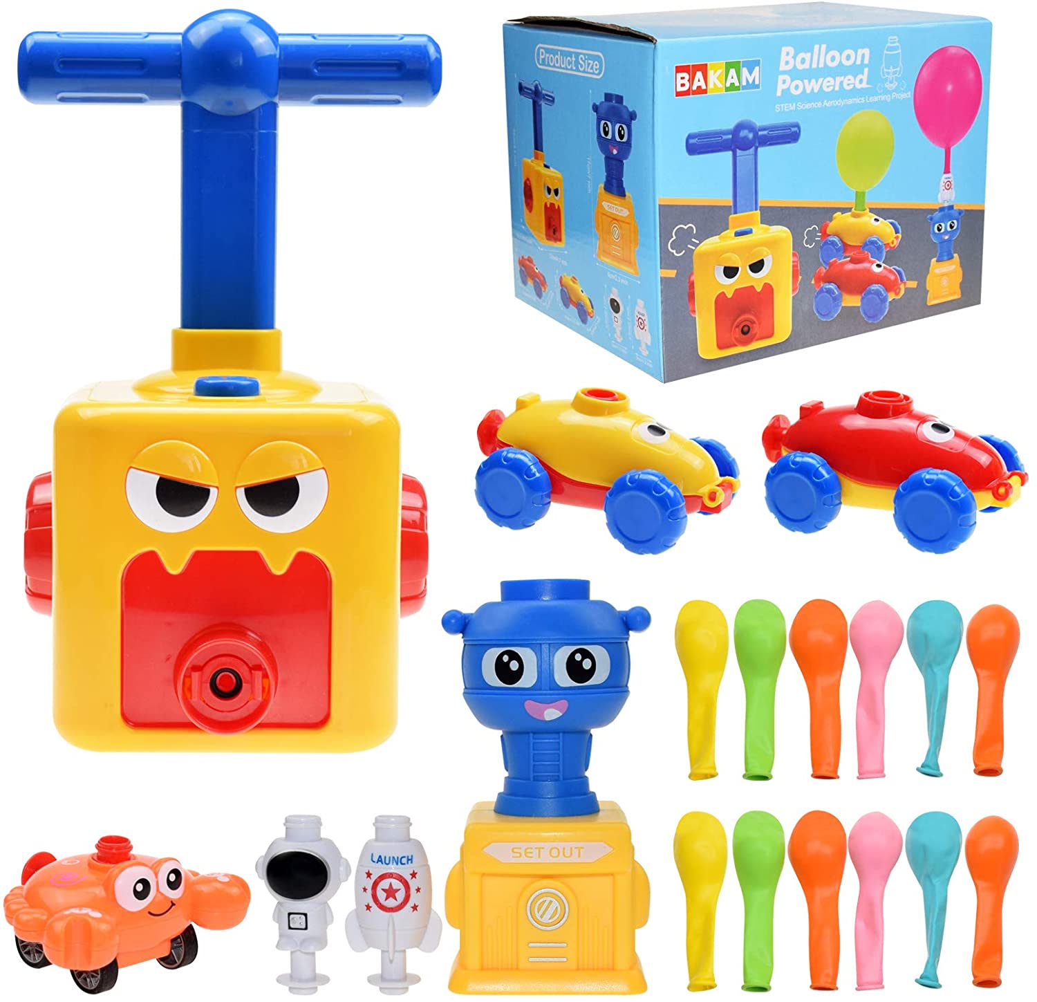 BAKAM Power Balloon Car Toy for Kids, Balloon Launcher Car Toy Set for Kids Science Toy, Inflatable STEM Balloon Pump Cars Racer Kit for Boys Girls (Upgrade)