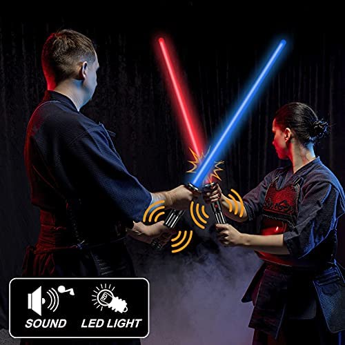 Tips: The latest design is that You can turn it off by pressing the button, or you can aslo stop using the lightsaber for 14 seconds until it automatically off down (Prevent battery consumption when no one is using it) PACKAGE INCLUDE: 6 x LED Light Up Light Swords COLOR: Blue/Green/Red Material: Plastic Size: Can be expands from 18 to 33 inches Realistic Effect: Bright glowing blades with realistic battle sound effects. Kids and adults alike will enjoy the dramatic sword clashing sound effects, and the whoosh as these toy light sabers slash through the air. Enjoy this fighting moment with your friend! Requires 3 AA batteries(Included and installed). Fun Battles With Friends & Family Perfect for Light Saber, Star War and Galaxy Fighters Themed Parties, Halloween Dress Up Parties, Halloween Costume Accessories, Costume Accessories, Luke Skywalker Pop, Jedi Master Role Playing, Darth Vader, Power Rangers Saber, Birthday Parties, Christmas Gift Stocking Idea, Xmas Present, Last Minute Gift and More!!!