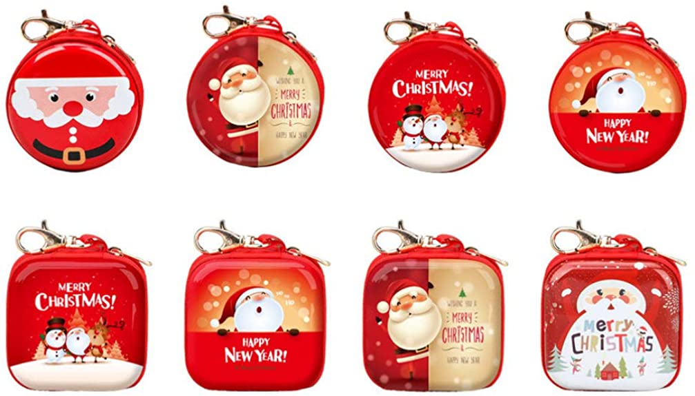 Balacoo Christmas Coin Purse Xmas Wallet: 8pcs Mini Coin Bag Holiday Cartoon Zipper Money Wallet for Festival Party Birthday Gift Random Style